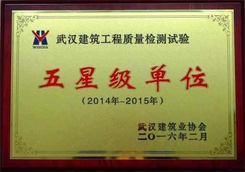2013年我公司被武漢建筑業(yè)協(xié)會選為檢測試驗工作委員會副主任委員單位,2012-2017年連續(xù)五年被評為先進單位,2013、2015、2017年連續(xù)三屆被評為武漢市建設(shè)工程質(zhì)量檢測機構(gòu)五星級檢測單位。2017-20…